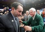 Duke coach Mike Krzyzewski, left, greets Bob Knight after win No. 903